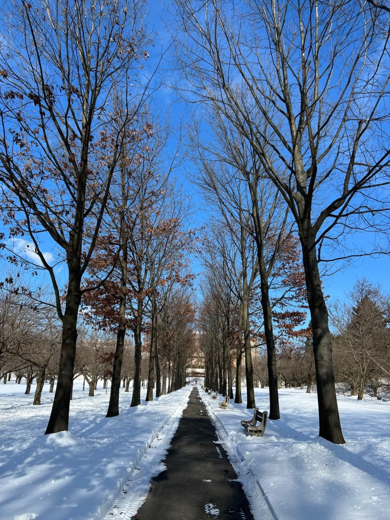 Since I had a couple of hours until my tour of the exhibit, I decided to tour the Brooklyn Botanic Garden next door. There were no walking tours that day and the gardens were under a foot of snow from the recent storm. There was a quiet beauty of all the snow and the way it fell and shined in the sun all over the gardens. There were no lines or crowds (like the recent lightshow a few weeks earlier), so I had the gardens pretty much to myself.
