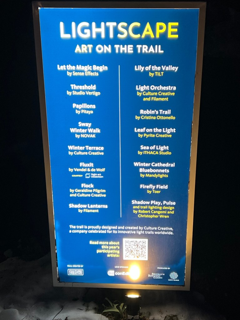 It was a nice way to wrap up the show. The “Lightscape” light display at the Brooklyn Botanic Garden was spectacular this year and always different. As cold as it was, it was still an amazing night of sights and sounds.