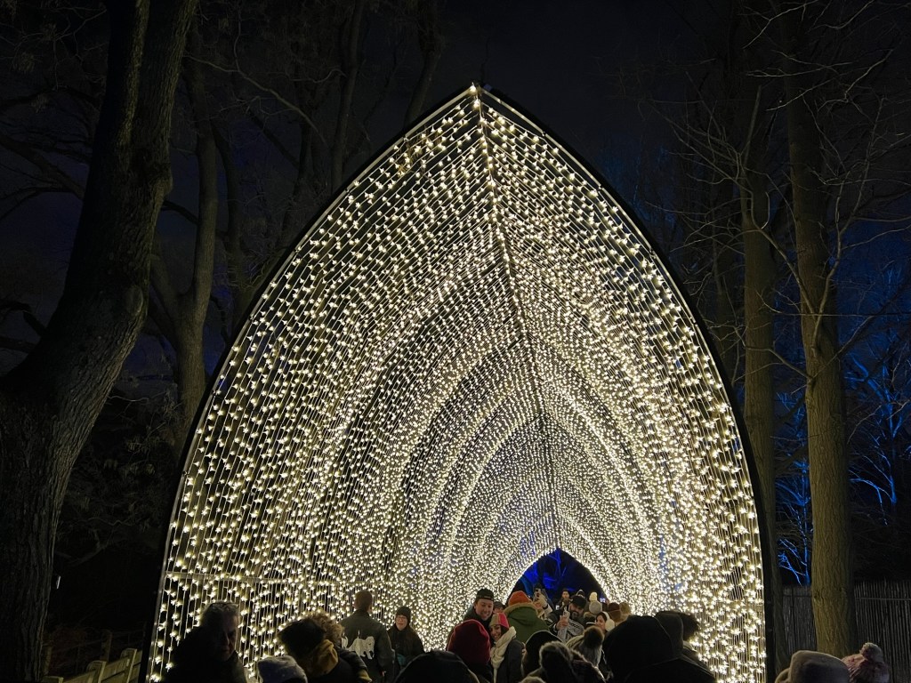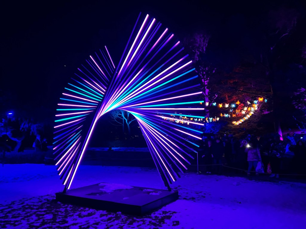As I left the gardens that evening, I exited through the ‘Winter Cathedral’, an archway of an illumination of lights that is the one place that foot traffic stops as people always want to take pictures here. While this display has moved around the gardens over the years, it is still the one display that has been been consistent every year.