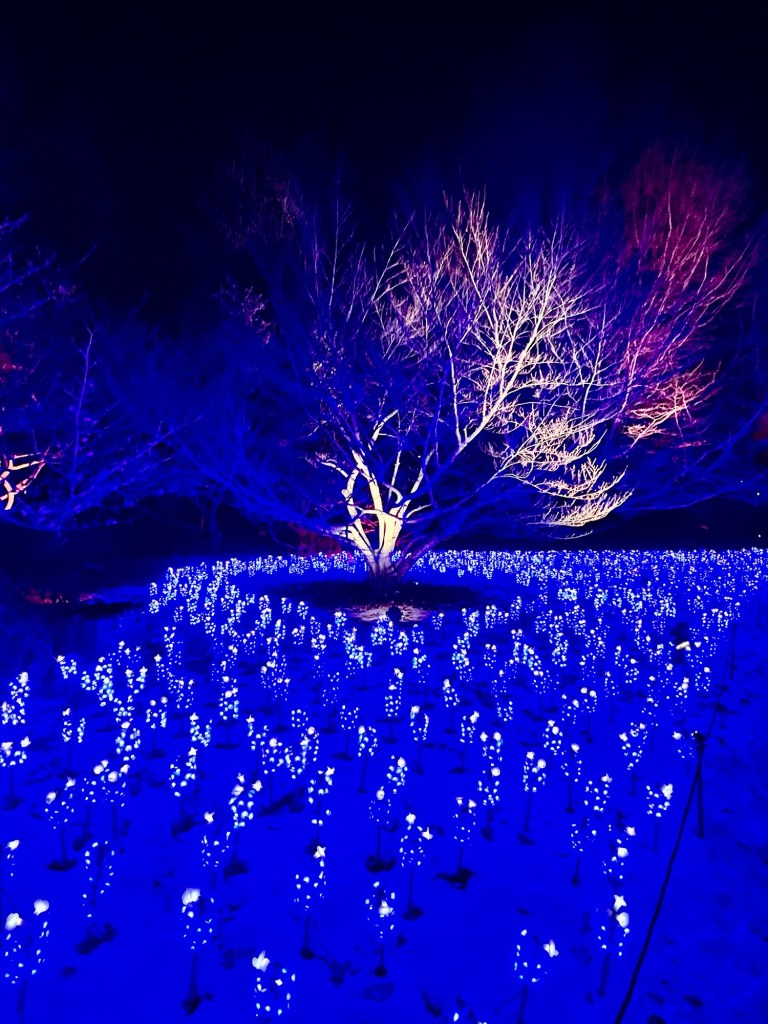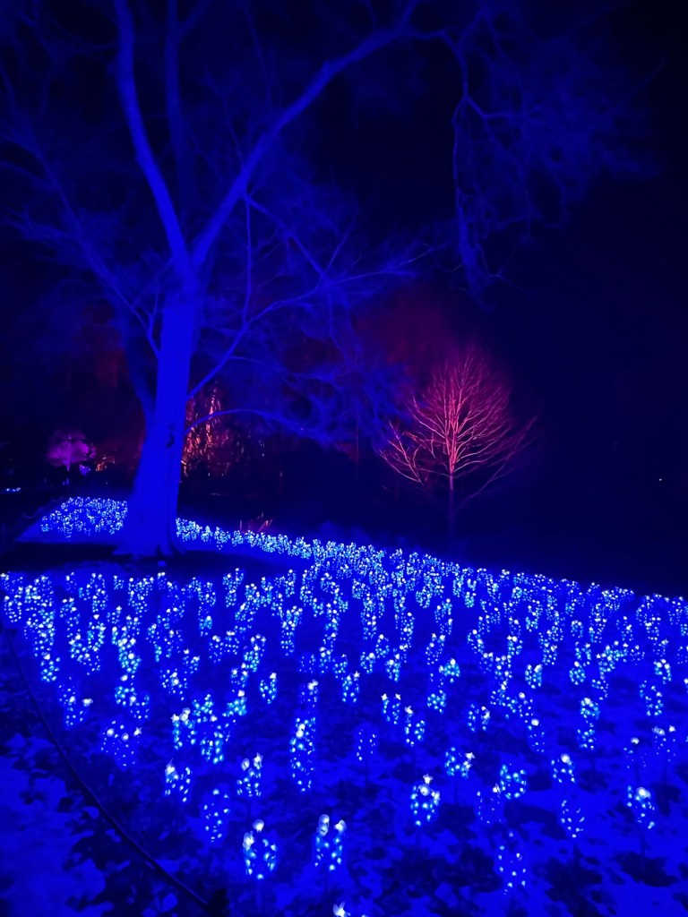 I followed the path down to where in the Spring, the Bluebell flowers bloom brightly and the whole area is a sea of purples and blues. Now it was ‘Bluebonnets’, a sea of purple lights. It was just picturesque and brought the gardens back even in the dead of winter.
