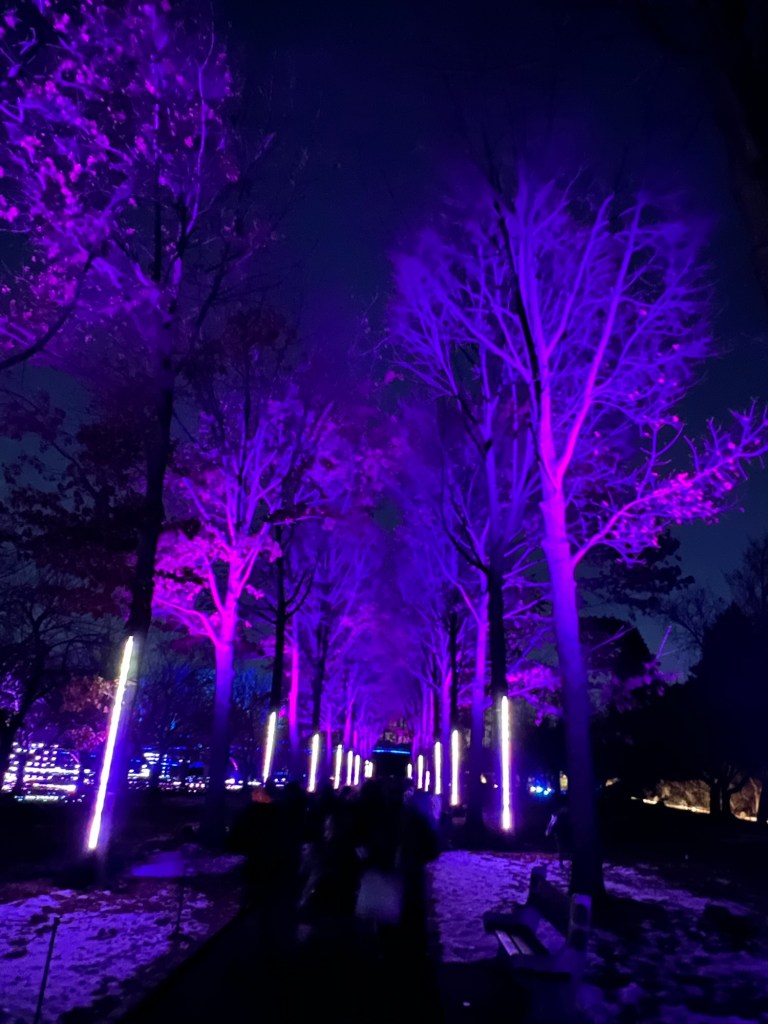 I loved walking past the lines of trees that were illuminated
